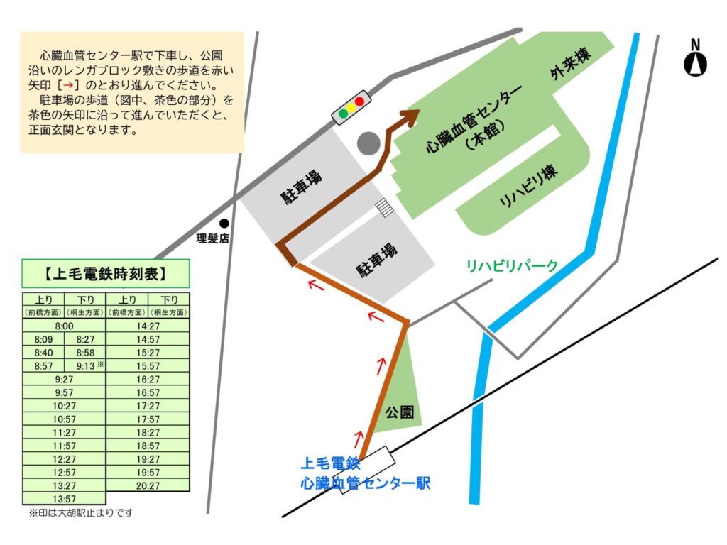 県道3号前橋大間々桐生線沿いに当院はございますので、当該路線などをご利用ください。